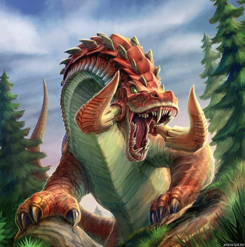 wilderness area with greenery around the creature. This type of character is commonly associated with dragons in