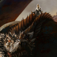 a fantasy scene, likely from the television show "Game of Thrones," which is based on George R.R. Martin's A