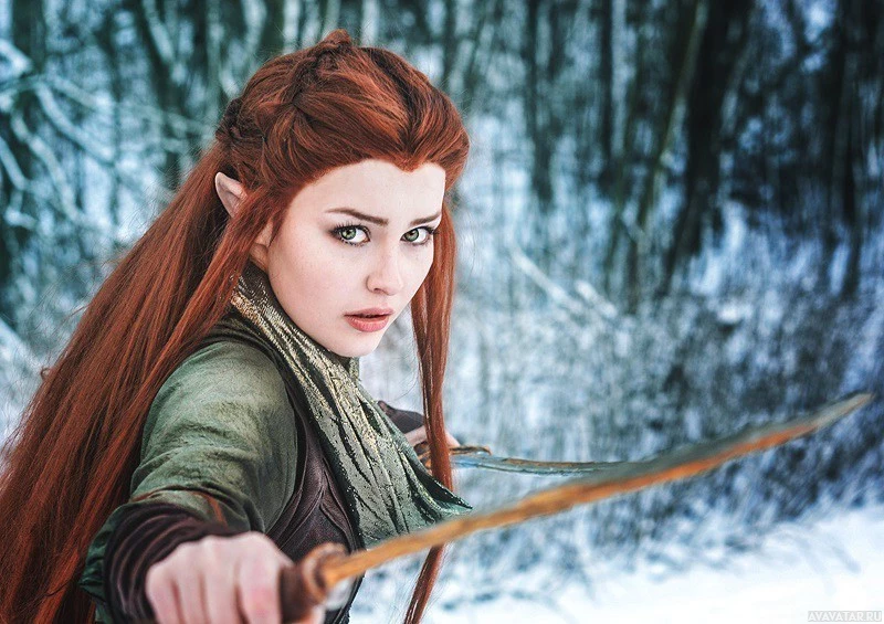 In the image, there is a person dressed as Tauriel from the "Hobbit"