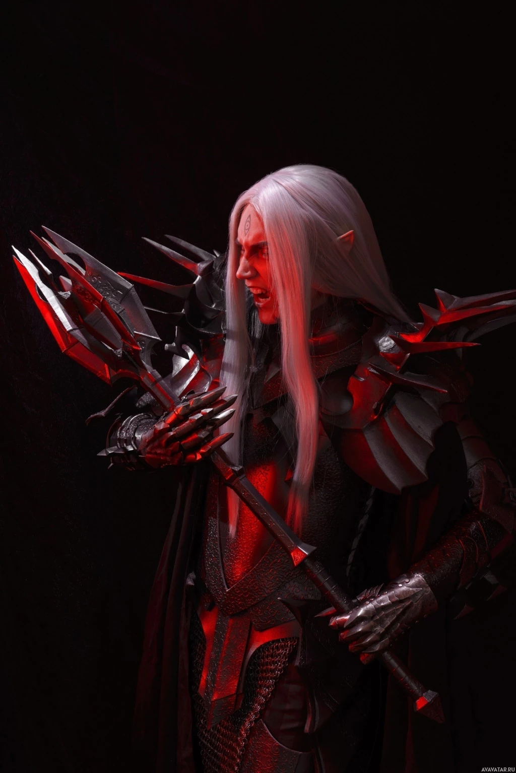 The image depicts a fantasy-themed character that appears to be an elf. This individual is wearing elaborate armor and has long