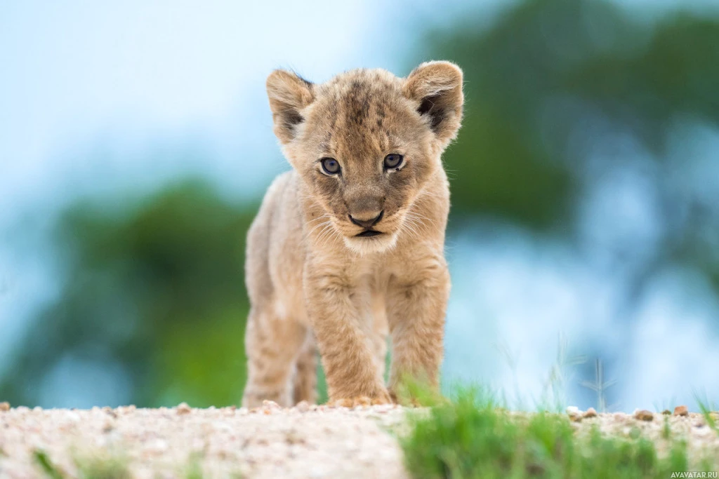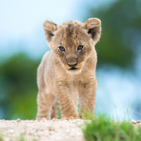Картинка показывает молодого львенка на наружной поверхности, которая кажется скалистой или песчаной. Он ходит с слегка опущенной головой, что может указывать на любопытство, осторожность или просто исследовать его окрестности. Окружающая среда предполагает, что он может быть в дикой природе или в естественной среде обитания, подходящей для львов.