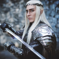 The image features an individual dressed in a costume that resembles the character of Legolas from "The