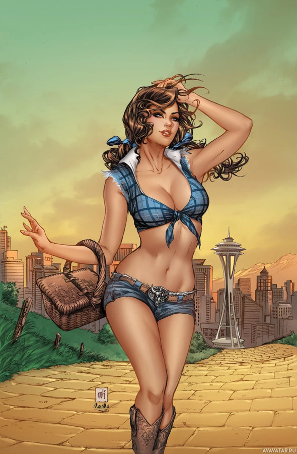 a city skyline in the background, suggesting a blend of modern and classic themes. Her pose indicates she may be dancing or performing some