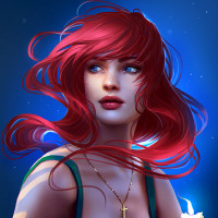 The image shows a stylized illustration of a woman with red hair. She appears to be gazing off into the distance, and there are candles visible in the background. The overall atmosphere is one of contemplation or introspection.