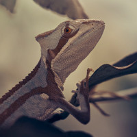 natural setting with soft lighting, which could suggest either dawn or dusk due to the golden hues. This type of lizard is often associated with