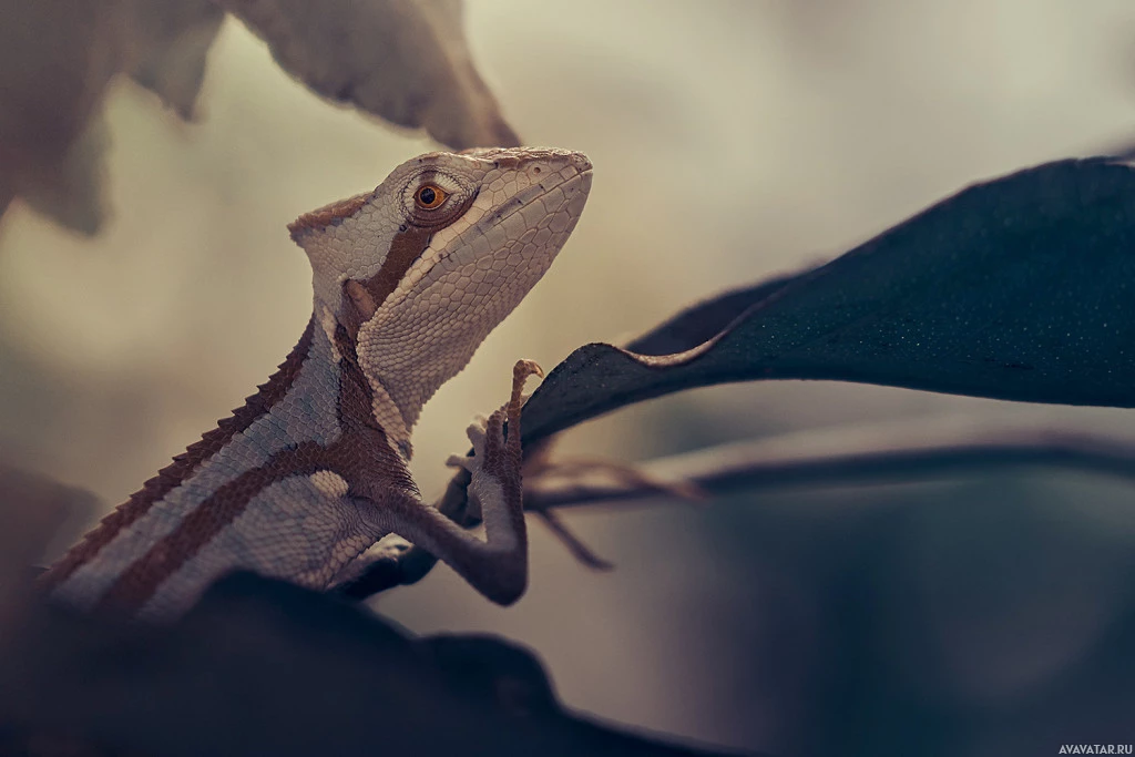 The image features a lizard, specifically a gecko or similar species. The lizard is resting on