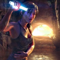 The image features a character from the Tomb Raider video