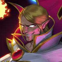 the video game "Dota 2." This character is known as Invoker, and he is depicted with distinctive features such as purple eyes and