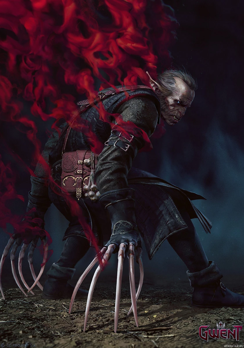 the video game "The Witcher 3: Wild Hunt." This character is known for his association with vampires and is referred to as Regis. The visual style suggests that it's a piece of promotional artwork or