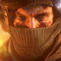 the midst of battle or action. The character's attire and gear suggest he could be a soldier or a member of special forces, equipped for combat in what appears to be a war-