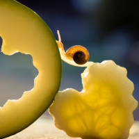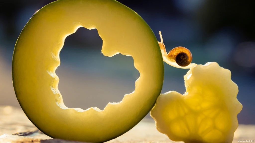 На картинке изображена улитка на поверхности маринованного огурца. Два маринованных огурца целые, один разрезан пополам, что позволяет увидеть улитку внутри половинки маринованного огурца. Это юмористическая или художественная композиция, поскольку улитки нечасто обитают в маринованных огурцах.