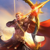 a video game or a digital illustration. The character is depicted with a bow and arrow, and the artwork has a dynamic and heroic feel to it, suggesting that this might be a character from an action-