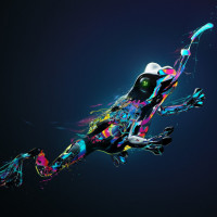 nature of the creature is not clear due to the abstract style used in the image. The term "frog" could be applied as it is one possible interpretation of this figure, but without more context, it's difficult to determine whether it truly depicts a frog or another