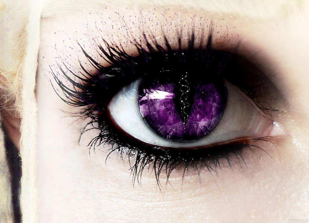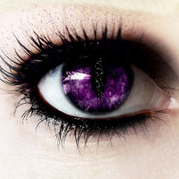 dark purple on the inner part of the eyelid and a lighter shade, possibly silver or light purple, on the outer edge, creating an unusual and striking look. There's also