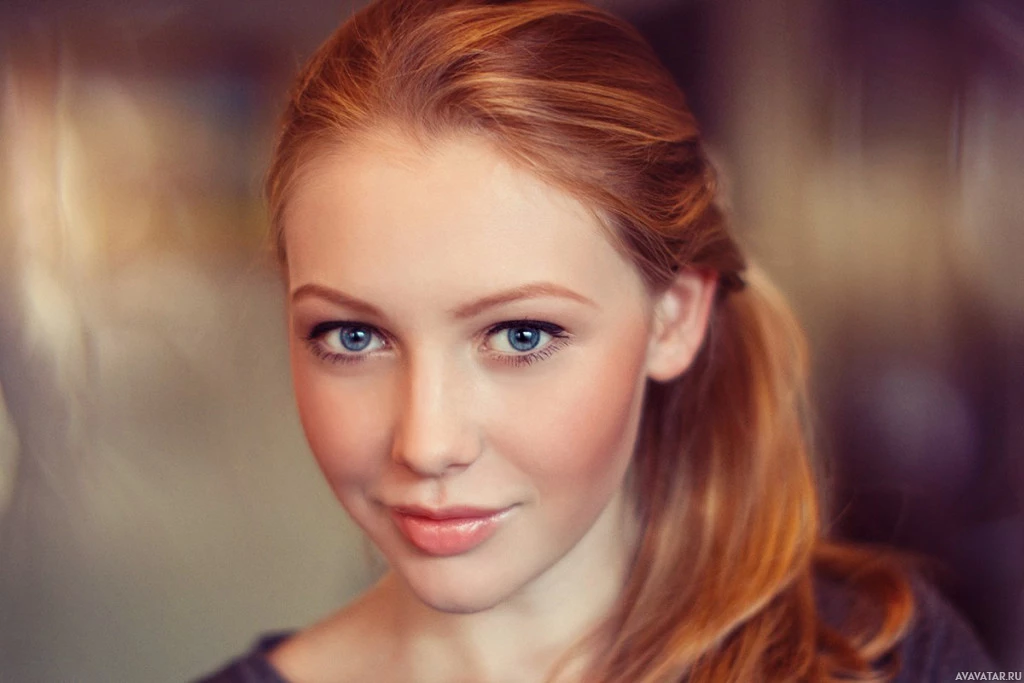 На картинке изображена молодая женщина с рыжими волосами. Она, похоже, носит макияж, в частности помаду и, возможно, тени для глаз, которые являются типичным косметическим выбором для улучшения личного внешнего вида. Ее взгляд направлен на камеру, и на лице у нее нейтральное выражение.