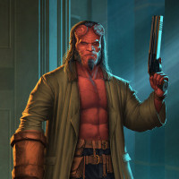 book superhero created by writer Mike Mignola. He is depicted with his usual features such as