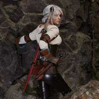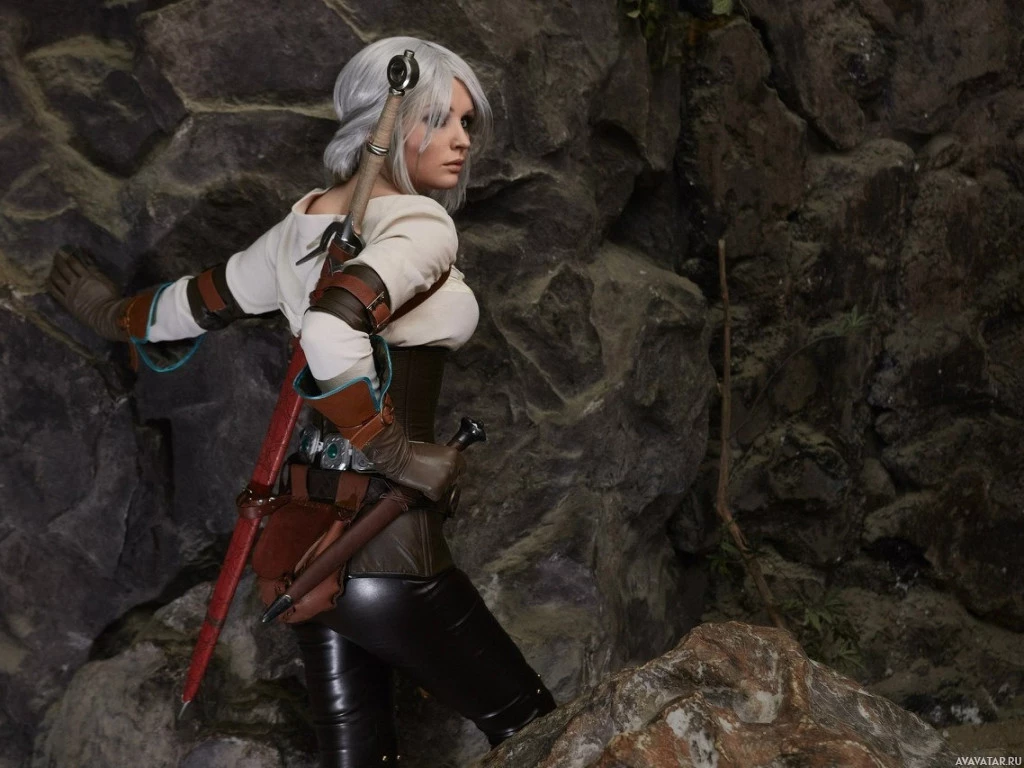 The image depicts a person dressed as Ciri, a character from