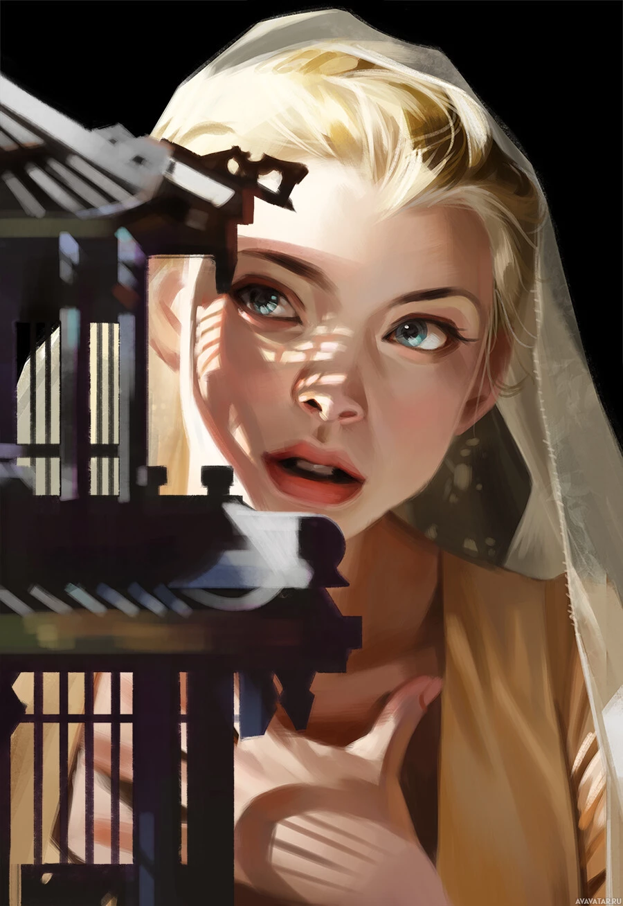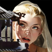 blonde hair. She is wearing what appears to be a historical or fantasy-style outfit and is looking towards the viewer with