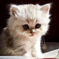 На картинке изображен котенок с мягким, светлым пальто. Он имеет яркие голубые глаза и, кажется, внимательно сидит на поверхности. Перед котенком также есть бумага или ткань, на которую он смотрит.