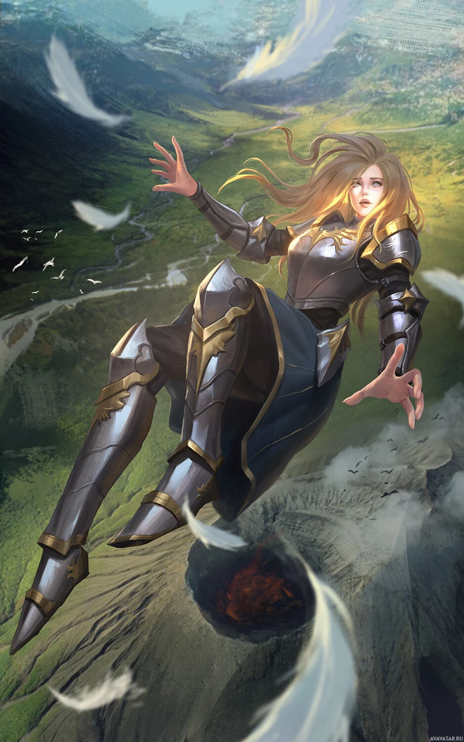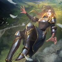 a blonde girl wearing armor. She is depicted in