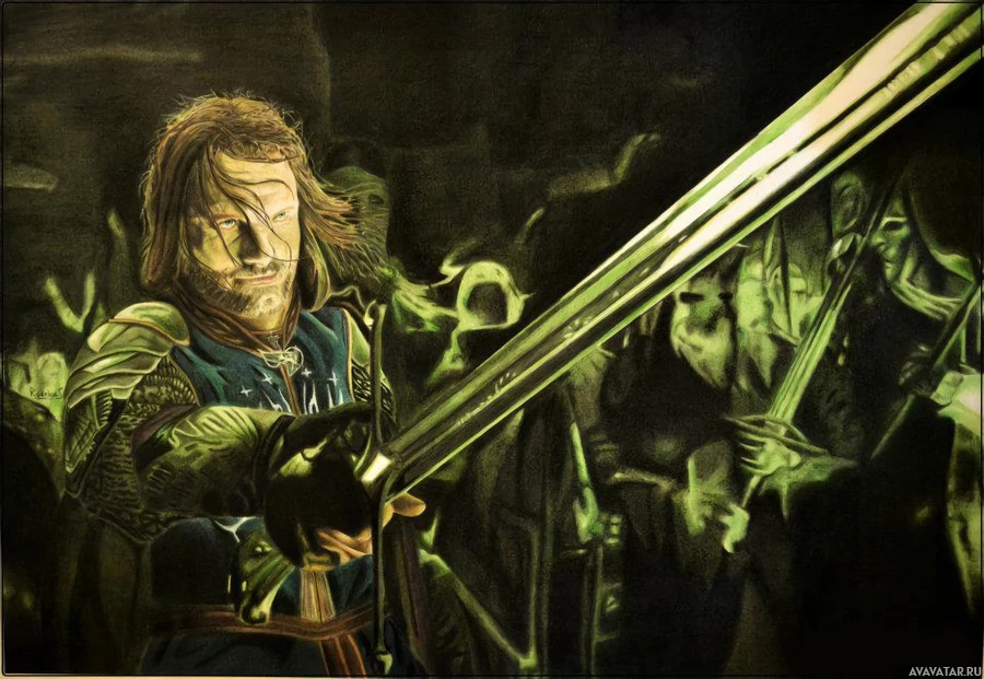 The image features a character that appears to be Aragorn, a central figure from J.R.R. Tolkien's "The