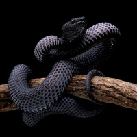 The image shows a snake with a unique feature - its scales are patterned to mimic the appearance of