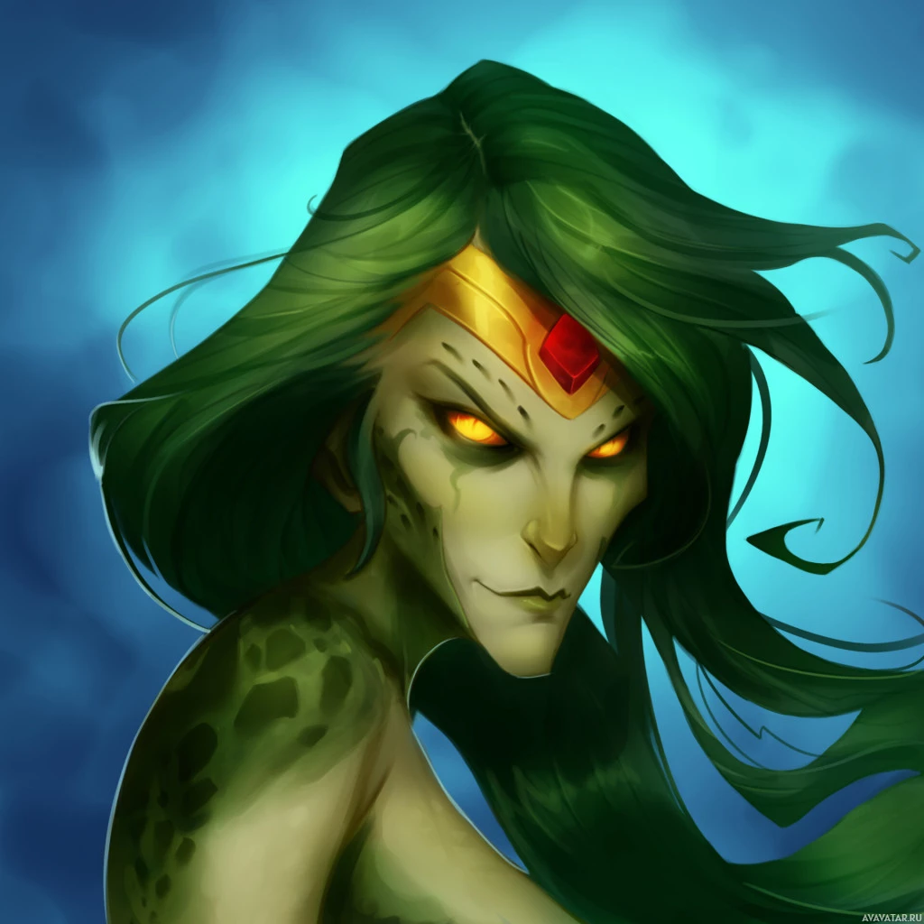 sharp teeth and eyes that give her an intense expression, suggesting she may have a fierce or dangerous personality. The style of the artwork is reminiscent of comic book illustrations, commonly found in fantasy-themed media.