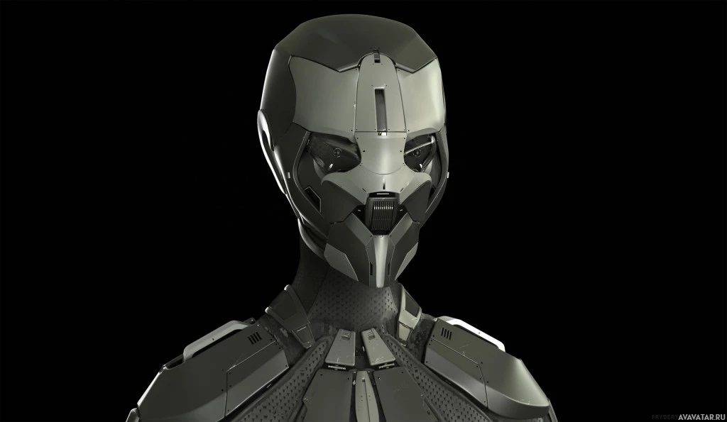 На снимке изображен человекоподобный робот. У него есть голова с лицом, возможно, глазами и ртом, что не характерно для роботов. Дизайн предполагает передовые технологии в области робототехники. Фон темный, выделяющий фигуру робота.