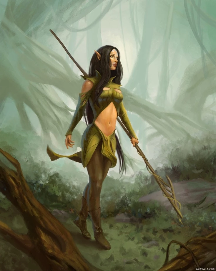 the natural surroundings, which is typical for elves to blend into their environments for hunting or protection.