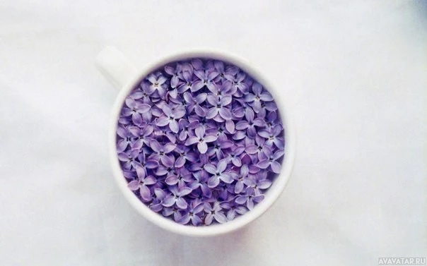 На картинке изображена чашка, наполненная маленькими фиолетовыми цветами, которые, вероятно, являются съедобными цветами, такими как фиалки. Эти цветы обычно используются в декоративных целях и в некоторых кухнях, особенно в десертах, таких как макароны или пирожные.