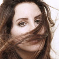 На снимке изображена женщина с выдувающимися на ветру волосами. Ее выражение созерцательно, и у нее есть пятно макияжа вокруг одного глаза. Кажется, она смотрит немного в сторону от камеры.