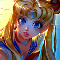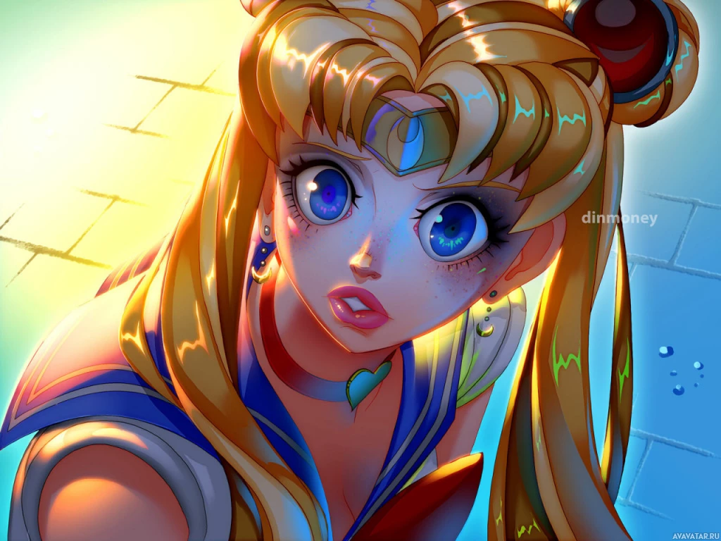 an animated character who resembles Sailor Moon, a well-known character from the Japanese manga and anime series. She is seen with her signature