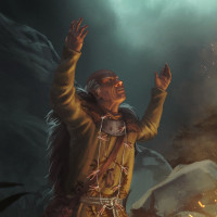 fantasy game settings, surrounded by rocks and foliage that suggest a wilderness location.