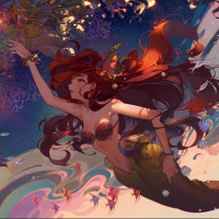 The image features a fantasy-themed illustration of a mermaid. She has long, flowing
