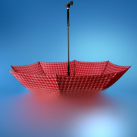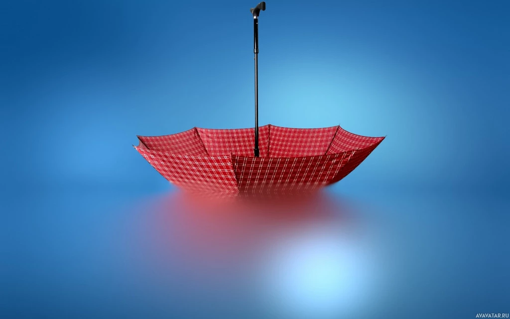 blue at the top to gray towards the bottom. The umbrella casts a shadow on the water-like surface beneath it, adding depth to the image.