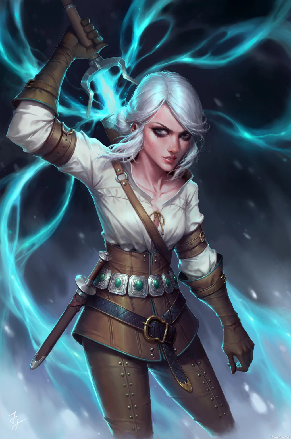 the video game "The Witcher 3: Wild Hunt." This character is known as Ciri, and she is portrayed with