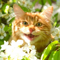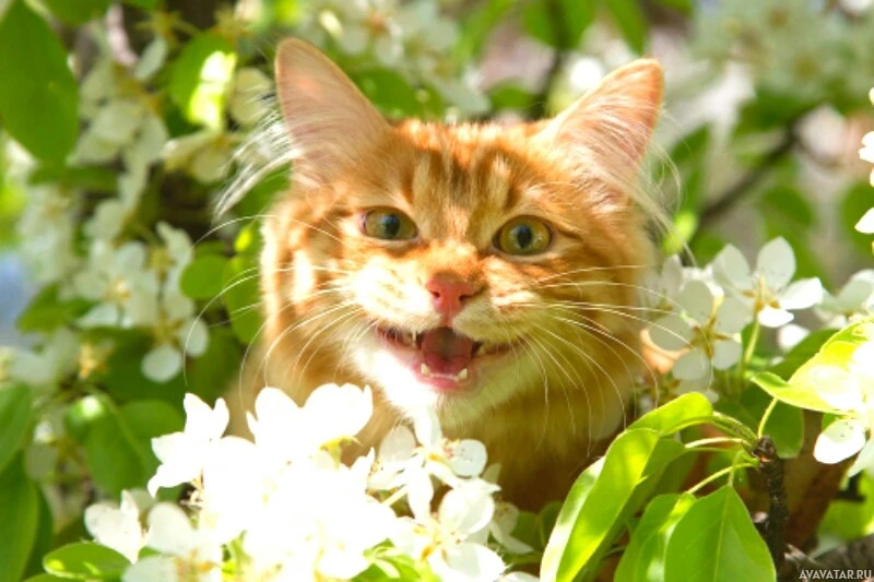 a joyful expression. Behind the cat, there are