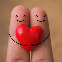 The image shows a hand holding a red heart-shaped object. On top of the heart, there are two stick figure drawings: one on each side that appear to be embracing or hugging the heart. This creates an illustration that seems to convey affection or love for the heart symbol.