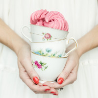 pink frosting or cake batter, suggesting a playful, whimsical theme. The setting seems to be indoors with a neutral-