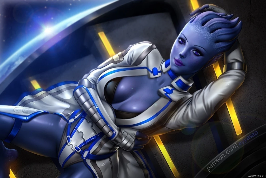 particular character appears to be Azari, who is a Turian female. In the game, Azari is often portrayed as being highly skilled in combat and possessing advanced