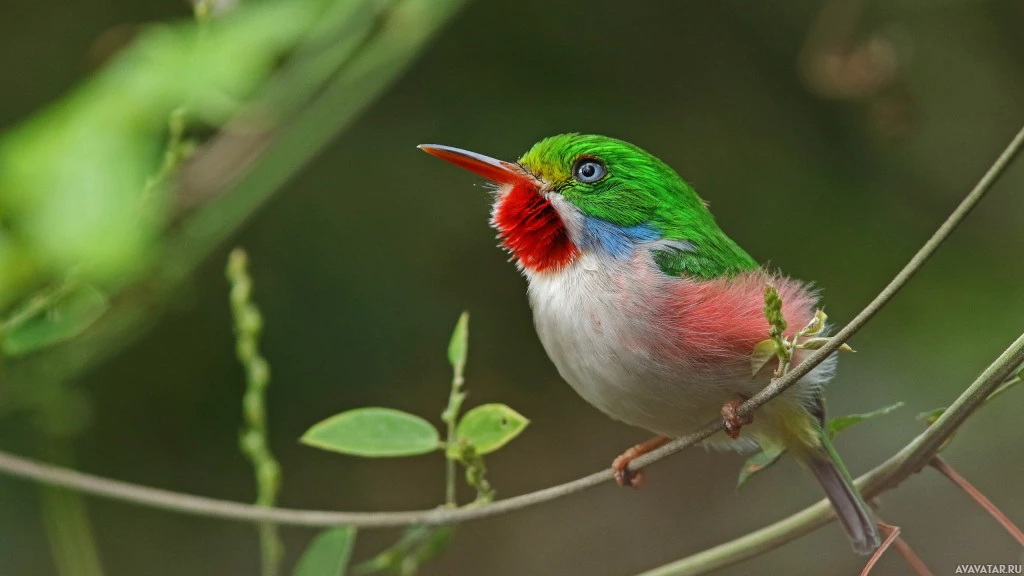На картинке изображена красочная птица, широко известная как килевый тукан или радужный лорикет. Он характеризуется ярким красным и синим оперением, с черными отметинами на голове и крыльях и удлиненным оранжевым клювом. Птица, кажется, сидит на ветке в естественной обстановке.