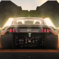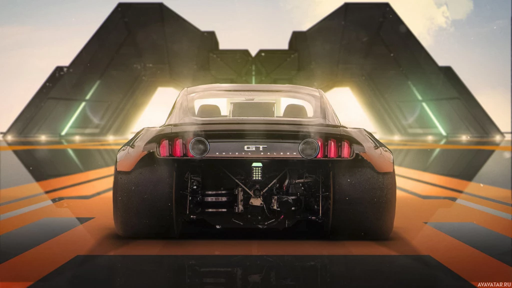 На снимке показан футуристический спортивный автомобиль, припаркованный на палубе космического корабля или космодрома. Автомобиль имеет гладкие, аэродинамические элементы дизайна и, вероятно, является концепт-каром, возможно, связанным с темами научной фантастики.