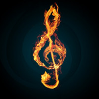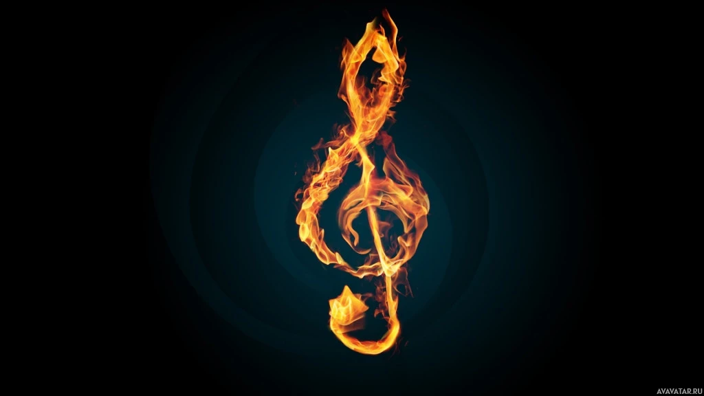 The image features a burning fire within the shape of a musical note. This could be interpreted as a representation of the concept that "music is the food of love." It's an artistic and symbolic depiction combining two elements: the passion for music and the intensity of romantic love or inspiration.