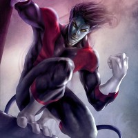 The image shows a character who appears to be Nightcrawler, a member of the X-Men from