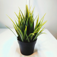 The image shows a potted plant with slender, green leaves. It appears to be a type of indoor ornamental grass or sedge, which is often used in interior decoration to add a touch of nature and life to spaces.