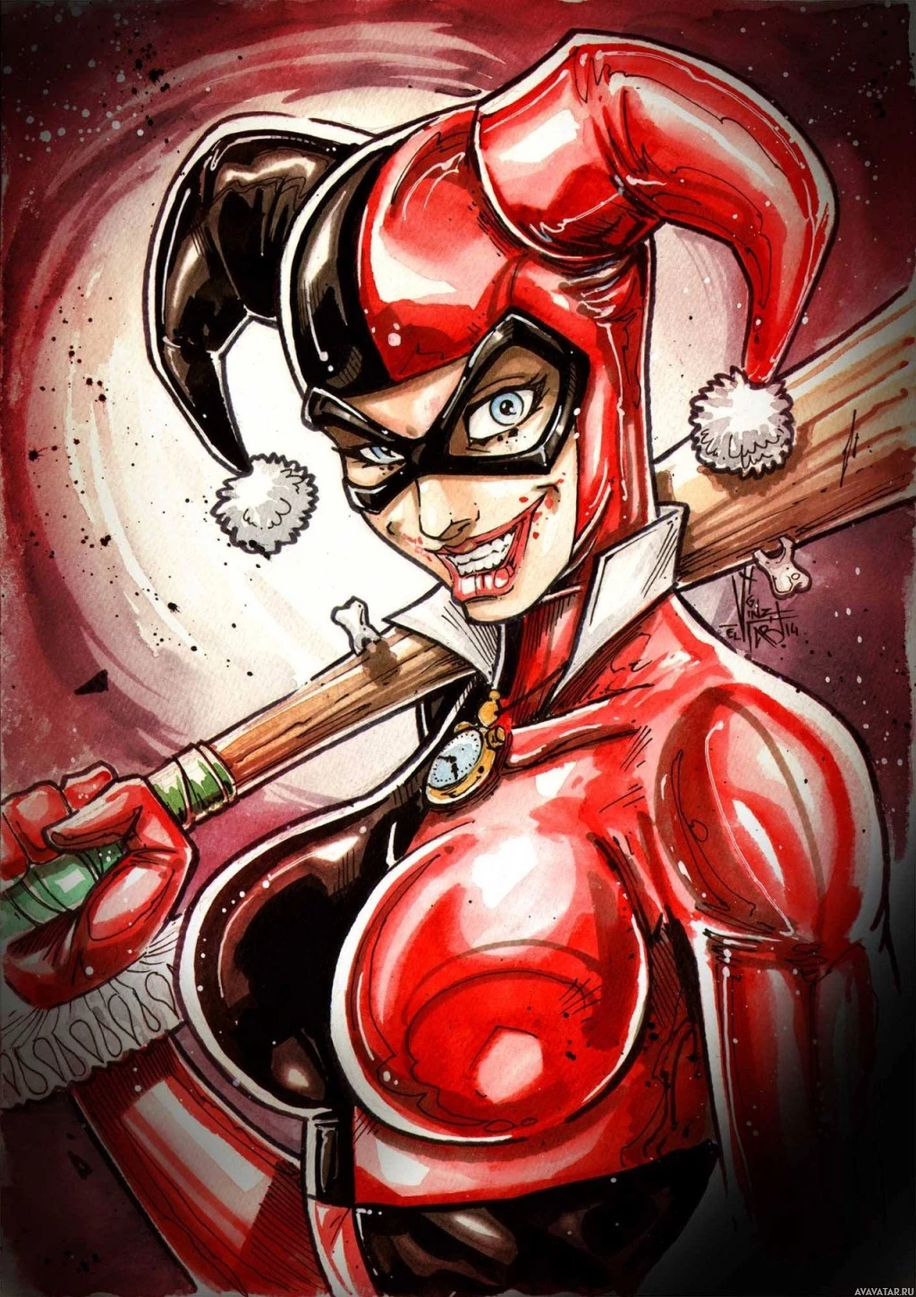 Harley Quinn, a fictional character from the DC Comics universe. She is depicted in her