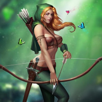 blonde hair, wears a hooded cloak, and is depicted in a stylized artistic manner with vibrant colors and dynamic posing that gives her an energetic appearance. This type of imagery might be associated with characters from fantasy or adventure genres, commonly found in
