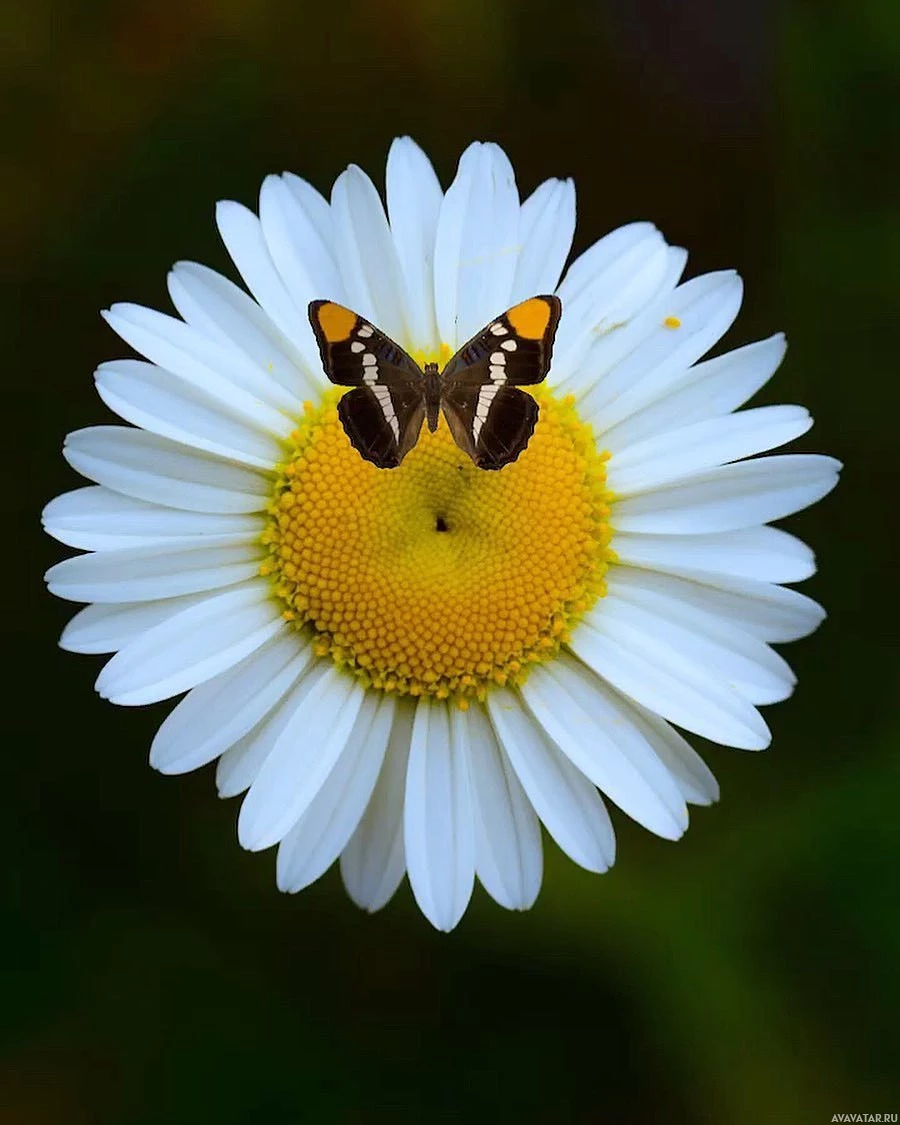 На картине изображен белый цветок с ярким желтым центром, в сопровождении красочной бабочки, расположенной на краю одного из его лепестков. Это изображение отражает красоту природы и тонкое взаимодействие между насекомым и цветочным субъектом.