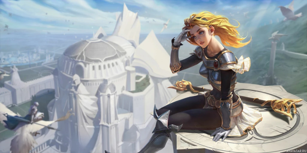 a female figure with blonde hair and armor, which suggests she might be a warrior or adventurer within the context of the game's storyline.