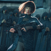 enemy forces, given their menacing expressions and stances. The setting seems to be outdoors with